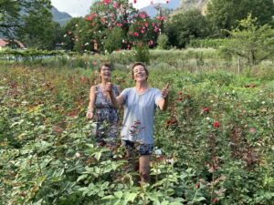 Eveline è partita con questo progetto nel 1995 a Loco, Valle Onsernone, piantando le prime 400 rose. Oggi si trova ad Avegno, Vallemaggia, con oltre 5’000 rose, 30 varietà di colori e profumi diversi.